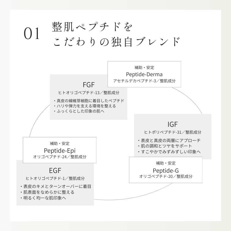 厳選したペプチド整肌成分 [ EGF・FGF・IGF ]と