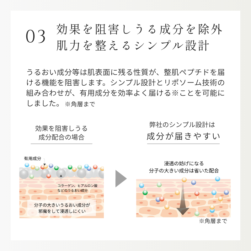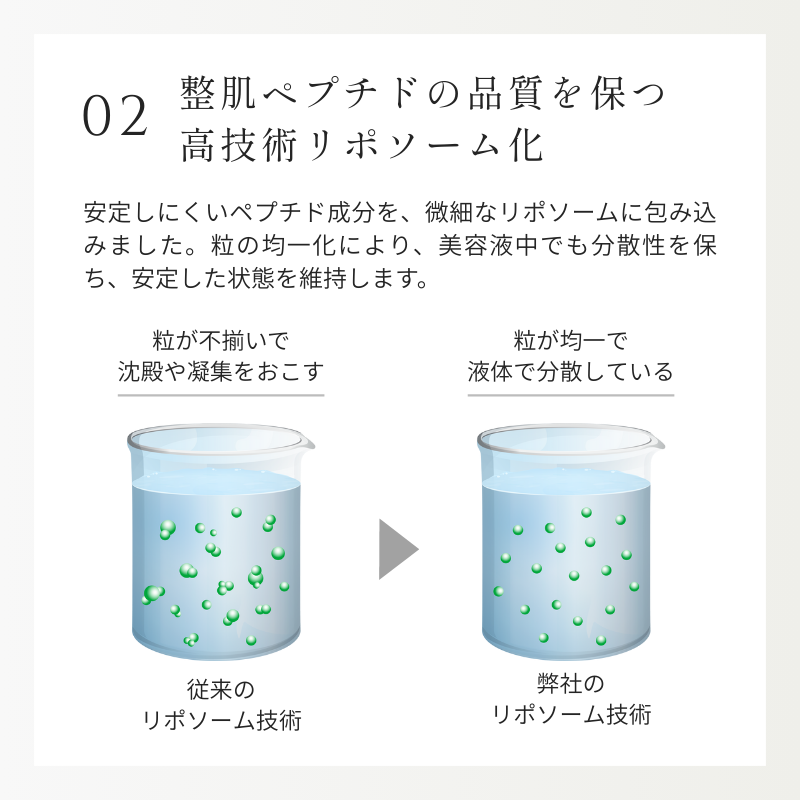 独自のリポソーム化技術で、肌の土台を整え、なめらかな肌印象へ。